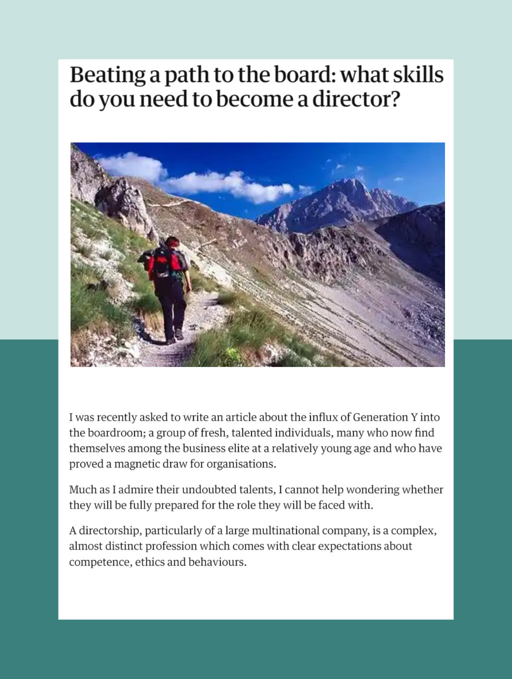 Competence: Board members need core functional skills in HR, Finance, Technology, Legal & ComplianceCommitment: how will you challenge and scrutinise the business or organisation and its activities?Contribution: You can only be effective if you are adding value to the organisation or initiative that you are working onComprehension: In order to contribute and lead effectively, you must understand the culture, history and the objectives of the organisation you serve and be able to communicate all those elements effectively to all stakeholdersCapability: There are many ‘soft’ skills that an effective board member should have in addition to their core functional skills, they include the ability to influence and negotiate, to communicate, to analyse and to think strategically